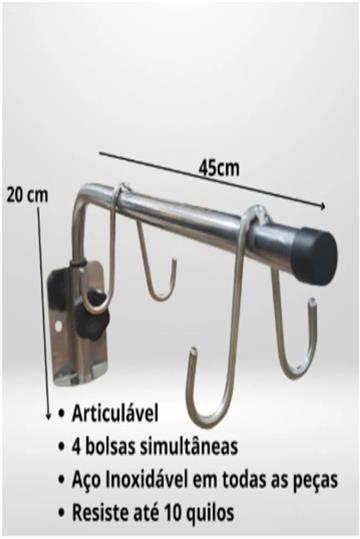 SUPORTE DE SORO INOX PARA PAREDE – 4 GANCHOS- ARTICULADOKIT COM 3 UNIDADESTamanho:20cm x 45cm