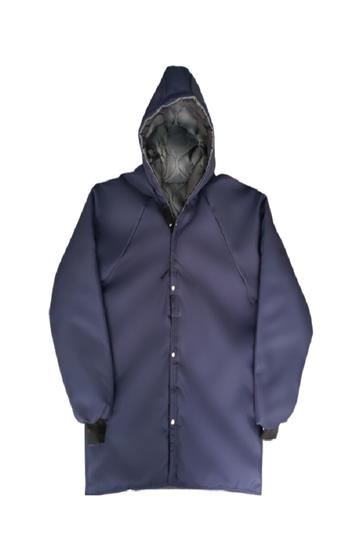 Aprovado para: Proteção do tronco e membros superiores do usuário contra riscos de origem térmica (Frio) Composição: Parte externa e interna confeccionadas em tecido de poliéster,. Possui manta Poliéster anti alérgica com gramatura 150g/m. Descrição visual: Japona térmica com mangas longas, capuz, fechamento frontal composto por botões de pressão e velcro. Utilização:(Câmara fria, ambientes climatizados e locais com baixa temperatura). Frigoríficos, supermercados, cooperativas, laticínios, restaurantes, farmácias, indústria de pescados, fabricação de sorvetes e etc. C.A: 28.160 Suporta até -35C.