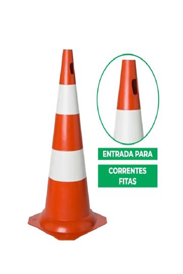 Cone de Sinalização 50cm Laranja e Branco Trânsito Estacionamento Cones são essenciais para o controle de trafego, demarcação de espaços e a segurança de pessoas. Feito em plástico polipropileno rígido que dão uma ótima resistência e um ótimo acabamento, possui faixas de sinalização e suporte para corrente e fitas, indicado para uso em vias internas e externas, marcação para estacionamento, ciclovias, obras e eventos em geral. Características Conteúdo: 10 unidades Material: Polipropileno rígido Faixas refletivas: Não Tamanho: 50cm Largura da base: 27cm x 27cm Cor: Laranja e branco Aplicações • Demarcação de áreas em geral • Controle de fluxo de pessoas • Organização de eventos e filas • Delimitação de áreas urbanas • Sinalização de construções e buracos em ruas • Delimitação de sentido de fluxo • Delimitação para trânsito de máquinas/equipamentos e empilhadeiras • Mercados, indústrias, escolas, escritórios etc.