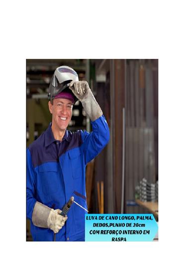 IDEAL PARA SOLDADOR E SERRALHEIRO - Luva de segurança confeccionada em raspa - Reforço INTERNO em raspa na palma e dedos - Reforço EXTERNO em raspa entre os dedos polegar e indicador - Punho 20 cm