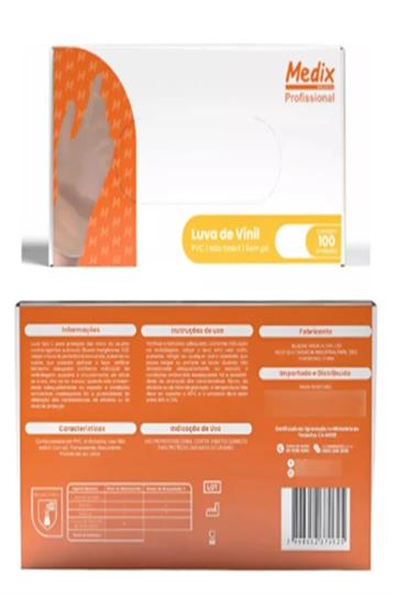 Luva Descartável Vinil Sem Pó Caixa C/ 100 Ambidestra Cor Transparente Tamanho M