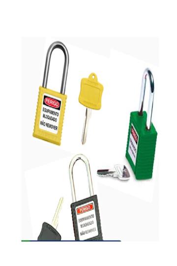 Acompanham uma chave com capa da mesma cor do cadeado. São eletricamente isolados, extremamente leves, estão disponíveis em amarelo, verde ou preto e podem ser usados nas diferentes áreas de sua empresa. Para maior segurança, todos os cadeados de bloqueio retêm a chave enquanto aberto.