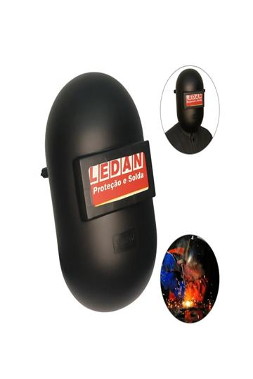 Confeccionada em Polipropileno, carneira simples. Visor fixo de 51mm x 108mm. Máscara de segurança para trabalhos de soldagem composta de escudo confeccionado em polipropileno, com carneira de plástico, com superfície externa áspera e interna lisa, com carneira de plástico com regulagem de tamanho através de ajuste simples ou catraca, ou sem carneira e com cabo confeccionado de tubo plástico de aproximadamente 105 mm de comprimento e 25 mm de diâmetro. A máscara pode ser fabricada com visor fixo ou basculante (articulado). No caso do visor fixo, este suporta o filtro de luz com uma placa de cobertura. Quando o visor é basculante, ele suporta uma placa de segurança na parte fixa e o filtro de luz com uma placa de cobertura na parte basculante. O filtro de luz, confeccionado em material plástico em tonalidade 9 e 10, e as placas de cobertura e de segurança, confeccionadas em material plástico incolor, são fixadas ao visor através de um suporte confeccionado de uma lâmina plástica encaixada em fendas internas do visor. O escudo é preso à carneira através de dois parafusos plásticos e o cabo, através de rebites metálicos.