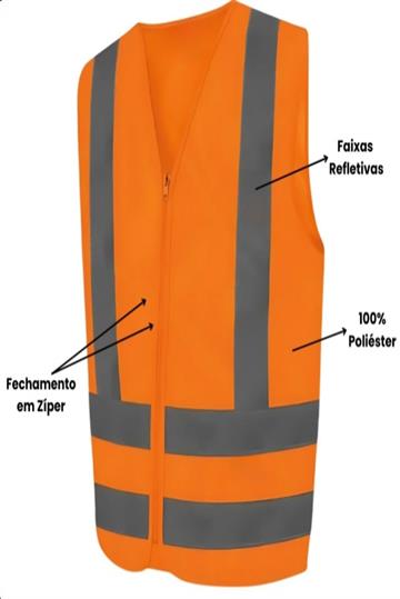 DESCRIÇÃO: Colete de Sinalização de alta visibilidade, confeccionado em tecido 100% poliéster fluorescente com faixas refletivas impermeáveis na parte frontal e costa, fechamento frontal em zíper.   ESPECIFICAÇÕES: Referência: Colete de Sinalização Normas: NBR 15292:2013 (Vestimentas de segurança e alta visibilidade) Cores: Amarelo, Laranja. Fechamento: Zíper Composição: Poliéster   TAMANHOS: Tamanho | Largura | Comprimento M | 50cm | 66cm G | 60,5cm | 68cm XG | 63,5cm | 70cm XXG | 66,5cm | 72cm   APLICAÇÃO: As Vestimentas de Sinalização não devem ser utilizadas somente em ambientes com baixa luminosidade. Este tipo de dispositivo também pode ser aplicado em plena luz do dia devido às suas cores vibrantes e faixas refletivas. Devido a suas faixas retro refletivas o colaborador fica também fica visível mesmo em longa distância, dias de chuva, neblina e principalmente à noite, contribuindo para a prevenção de acidentes.   INSTRUÇÕES DE USO: Selecione o colete com o tamanho adequado seguindo a tabela de medidas (Pag: 1); Verifique sempre os riscos da atividade a ser desenvolvida; Atividades em condições climáticas adversas (ex: Neblina, fumaça, chuva, etc.); Ambientes com atividades que exponham o trabalhador a condições de risco devido à falta de visibilidade; Atividades em áreas de tráfego de veículos; Ambientes com baixa luminosidade, alta concentração de poeira ou fumaça (ex: Minas de extração de recursos naturais, construções, túneis, etc.   CONSERVAÇÃO E LIMPEZA: Lavar a mão, com sabão neutro e água, se for lavar na máquina, colocar posição de roupas delicadas, secar à sombra, não utilizar maquinas de secar e fontes de calor.   Compre com a Calçados para trabalhar. - Atendimento imediato para responder todas as suas dúvidas. - Enviamos em menos de 24 horas para todo Brasil. - Trabalhamos somente com as melhores marcas do mercado. - Produtos originais. - Anúncios somente de produtos a pronta entrega
