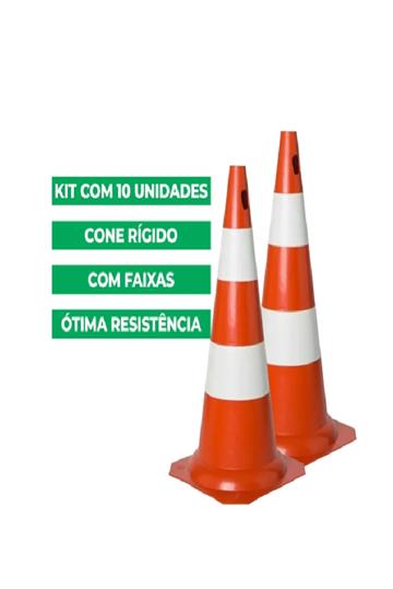 Kit 10 Cone De Sinalização Laranja Branco Pvc 75cm Original