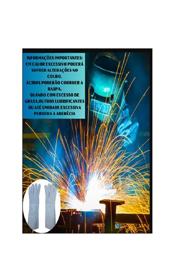 IDEAL PARA SOLDADOR E SERRALHEIRO - Luva de segurança confeccionada em raspa - Reforço INTERNO em raspa na palma e dedos - Reforço EXTERNO em raspa entre os dedos polegar e indicador - Punho 20 cm