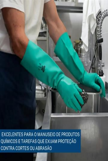 Luva Nitrílica Para Limpeza Proteção Química Forrada Com Ca
